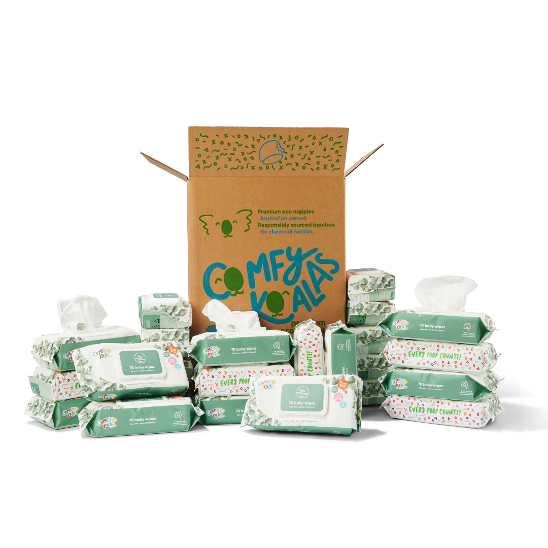 Many baby wipes on the supermarket shelf are made from plastic. Who knew!? Save your fave ‘lil bum from polyester induced irritation, one wipe at a time with Comfy Koalas.