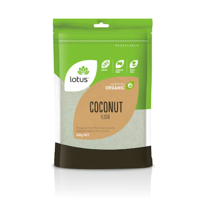 Lotus Organic Coconut Flour is certified organic, gluten free, a source of protein and fibre, vegetarian and non GMO.