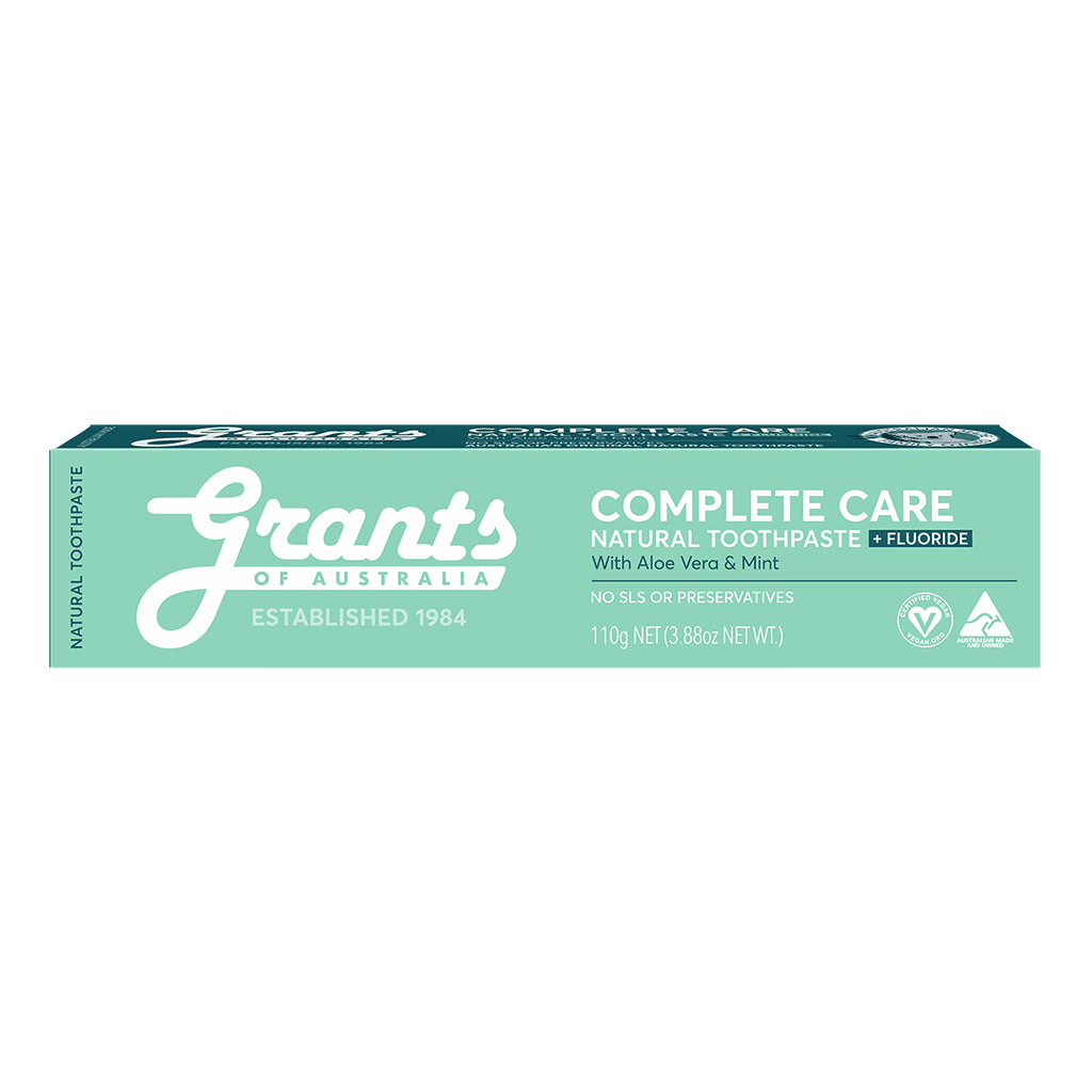 Grants Complete Care is a multi-benefit toothpaste that provides all day protection for your teeth and gums. With fluoride to help fight cavities and prevent tooth decay, Aloe Vera to soothe gums and a fresh spearmint flavour to freshen breath. Clean, soothe and protect your teeth while enjoying the benefits of natural herbs for gentle oral care. It’s everything you need in a toothpaste! Use day and night.