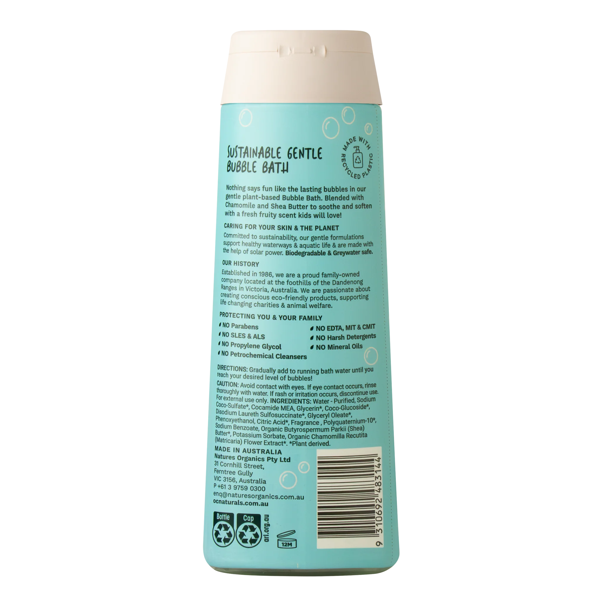 Nothings says fun like the lasting bubbles in our gentle plant-based Bubble Bath. Blended with Chamomile and Shea Butter to soothe and soften with a fresh fruity scent kids will love!