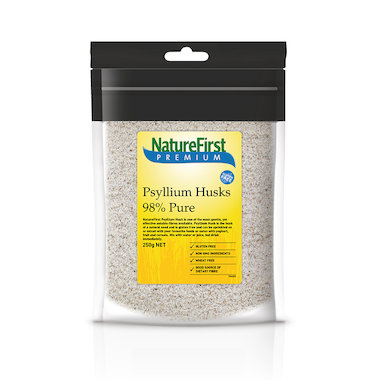 Most of a fibre in psyllium is hemicellulose which is a complex carbohydrate found in whole grains, fruits and vegetables. Hemicellulose is indigestible, however, it is partially broken down in the colon and acts as a prebiotic – feeding your friendly intestinal bacteria. Being indigestible it adds fibre to your meal, not calories. Psyllium husk is ideal if you simply want to add a pure and natural source of fibre to your diet. Being the husk of a seed it is a natural product. Being so high in fibre content it is a pure source of fibre without a significant amount of sugar, fat or carbs. Nature First psyllium is very neutral in taste and so can be added to your diet in very varied ways. Such as adding to baking or everyday cooking.