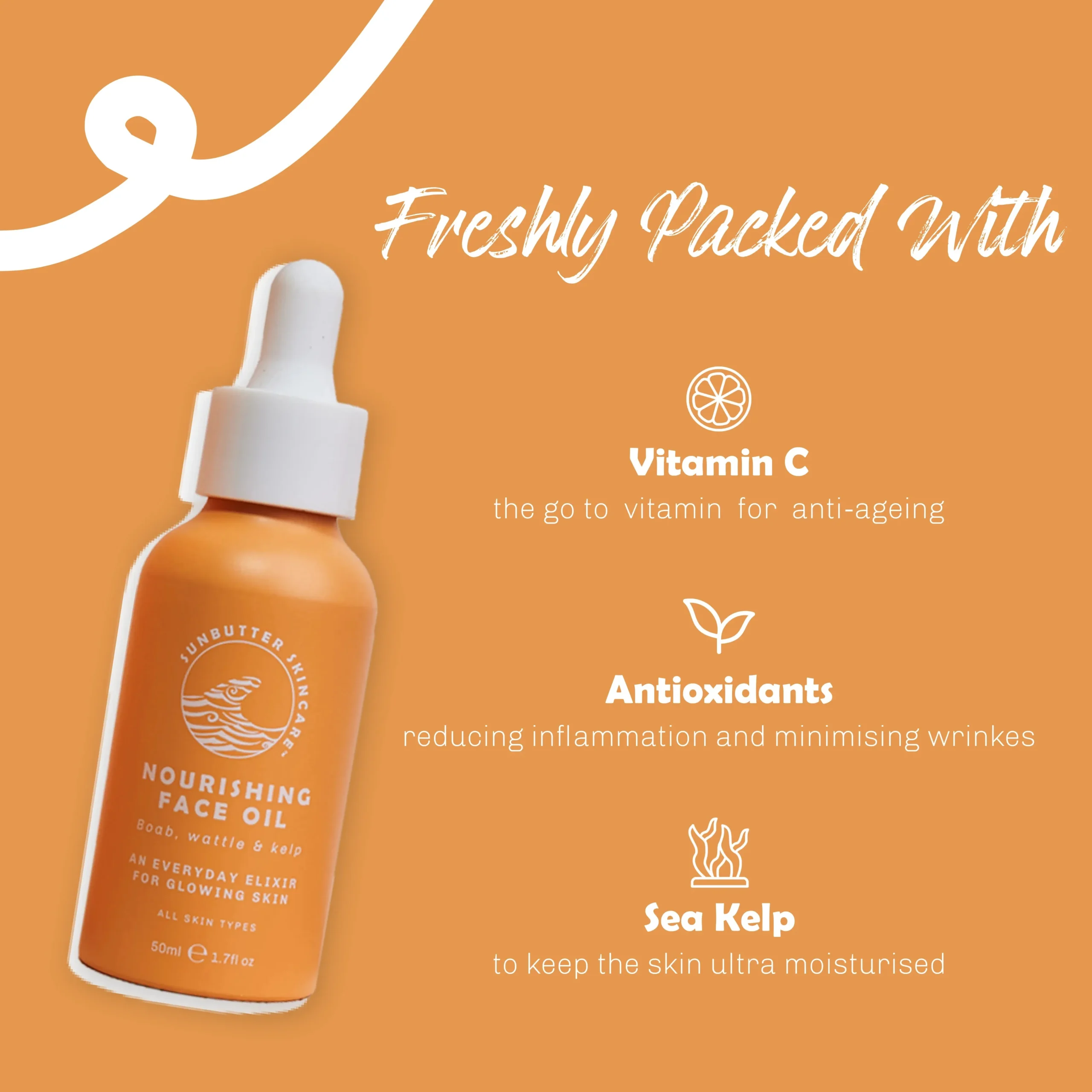 A nourishing blend of 7 botanical oils that delivers hydration and antioxidant protection, our Boab, Wattle & Kelp Face Oil works to soften, rejuvenate, and protect sun-exposed skin. Packed with vitamins to support collagen production, it absorbs quickly to leave skin feeling soft, plump, and radiant. Suitable for all skin types, this non-greasy oil blend is perfect for daily use to boost skin health and lock in lasting moisture.